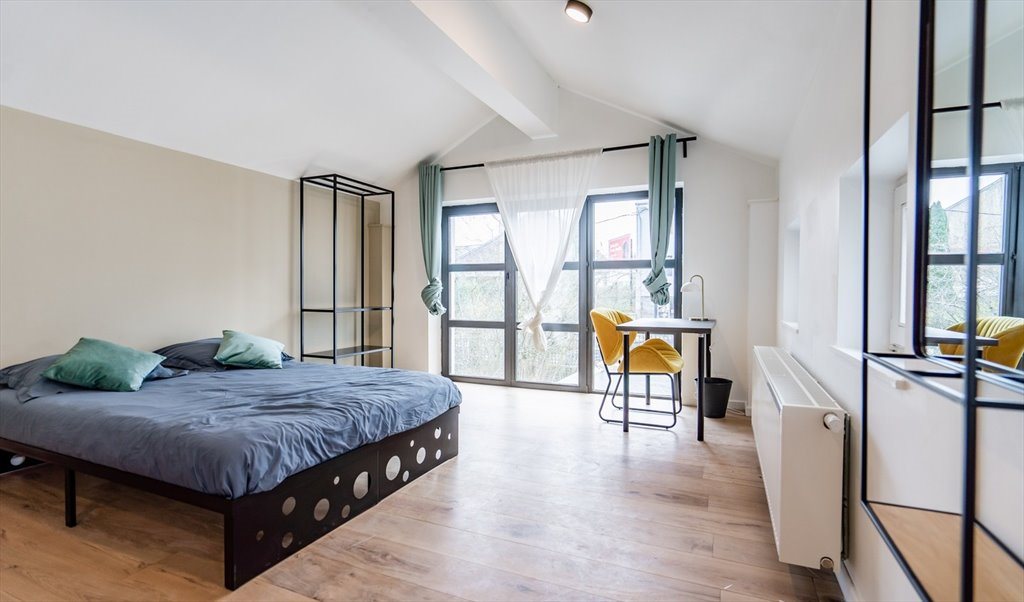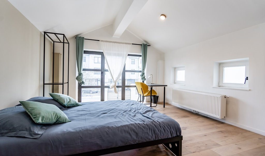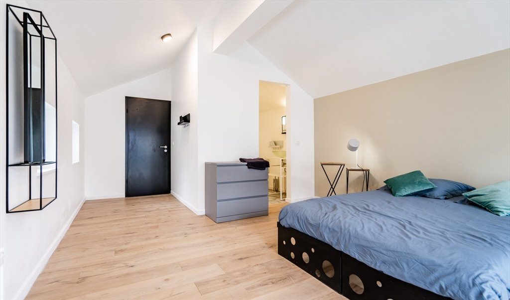Maison en colocation de 180 m² est composée de 4 chambres, de 4 salles de bain, de 40 m² d'espaces communs (salon, cuisine, salle à manger) et d'espaces extérieurs.
