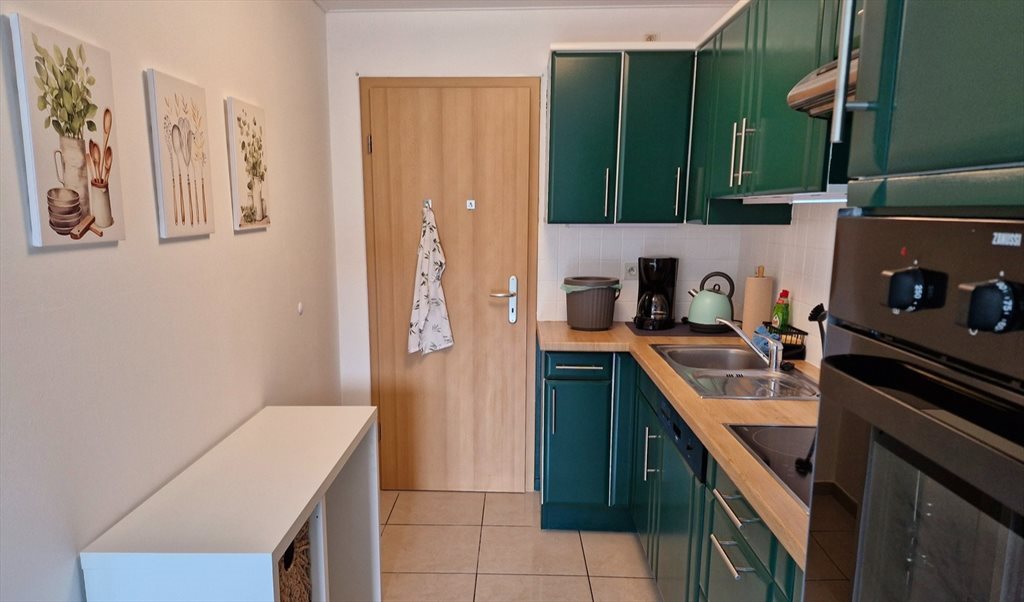 Cuisine équipée : Four, plaque de cuisson, réfrigérateur, congélateur, lave-vaisselle et ustensiles de cuisine ainsi que vaisselle à disposition