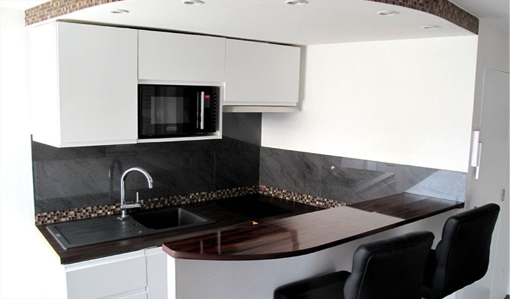 Salle de bain et cuisine très bien équipée avec plaque à induction, frigo, congélateur, four, micro-onde, évier synthétique et mitigeur col de signe de grande qualité, vidéophone, emplacement de parking devant l'immeuble libre et gratuit.