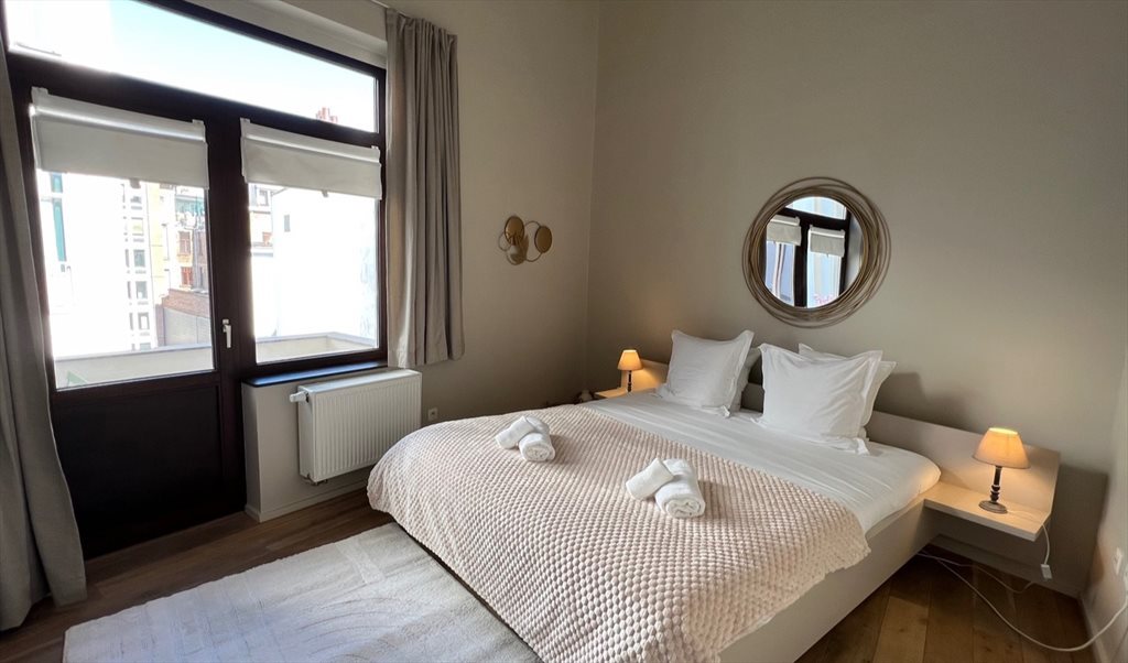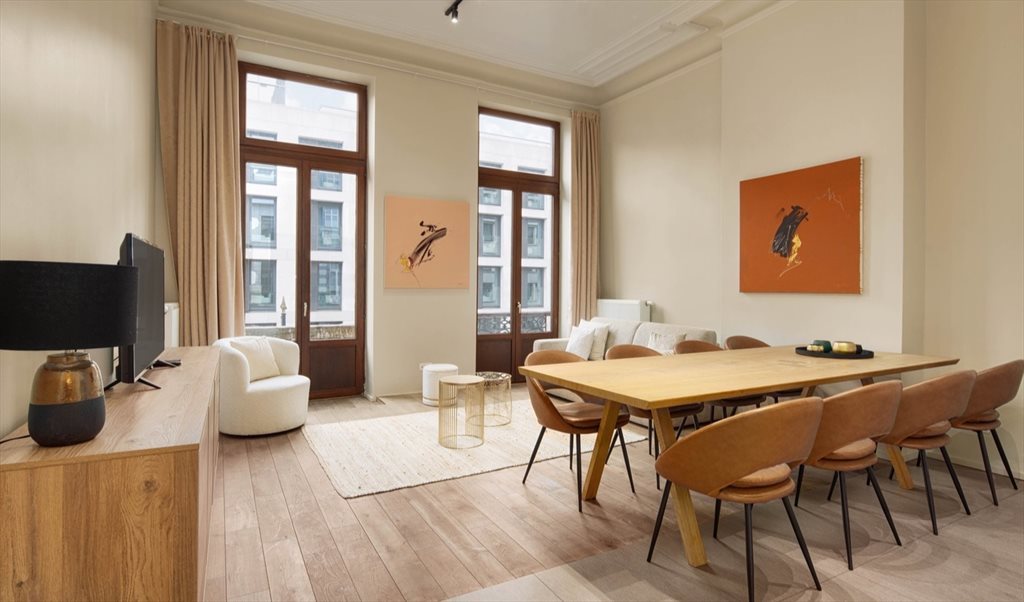 Chambre meublée dans colocation de 3 chambres au total, chaque chambre possède sa salle de bain privative, appartement entièrement meublé avec matériaux de standing, situé en plein centre de Bruxelles, rue Royale, à 2 pas du Parc Royal et du métro Parc.