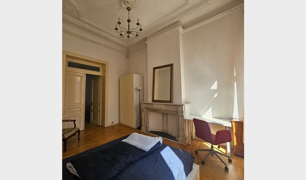 Ideally located between the city center and the CE. Very nice private room with bed, office table, dressing, wooden floor, in very large bright apartment with big windows, height ceilings, stylish living room with TV (and cable TV included), wifi, lounge and dinner table, completely equipped kitchen and nice terrace. Ideal for young international. Apartment shared with one other young international. Maison de maître located near lovely place de la liberté and several cultural activities and restaurants nearby. Metro at a few metres ! Easy parking. Royal parc nearby. Walking distance to center and CE ! All costs included water, electricity, gaz, cable TV and Wifi .