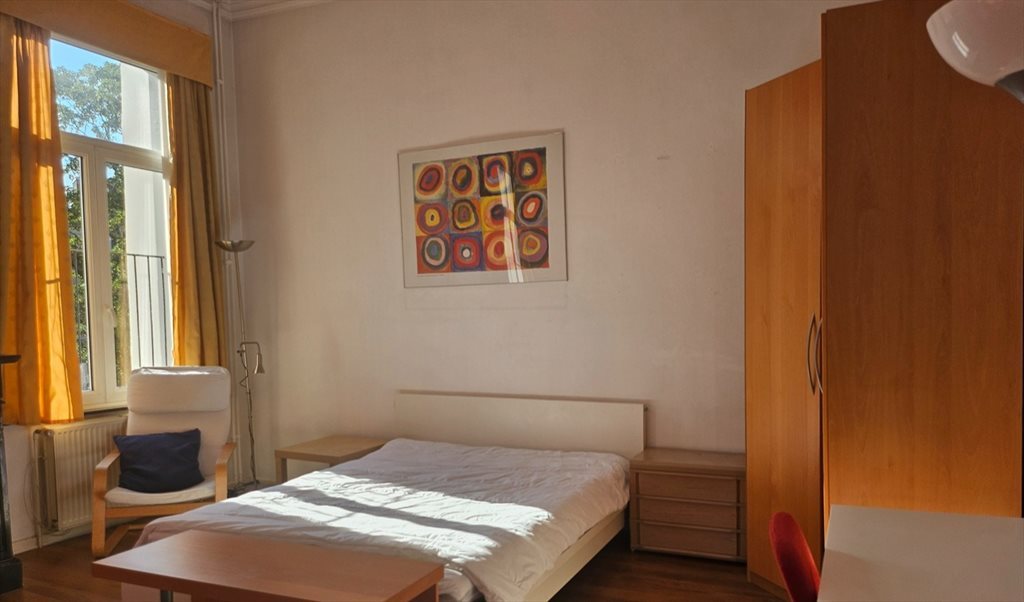 Ideally located between the city center and the CE, very spacious 40m² room with double bed, office table, dressing, lounge, wooden floors, high ceilings, in very bright apartment with big windows, wifi, completely equipped kitchen. Apartment shared with one other young international, several other young professionals in the house. Maison de maître located near lovely place de la liberté and several cultural activities and restaurants nearby. Metro at a few metres ! Easy parking. Royal parc nearby. Walking distance to center and CE ! All costs included water, electricity, gaz, Wifi.