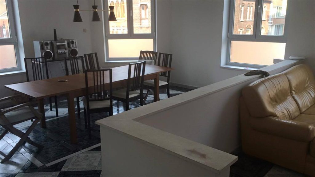 Duplex apartment, totally new, washing machine room, storing, two bathrooms, very large kitchen. Near to school of kinesitherapy, nursing, hospitals, université du travail, public library, stadium of Charleroi, Waterloo metro station. Bazaar on Sunday in the parallel street. Very calm street parallel to the commercial street. MOVING IN PROGRESS