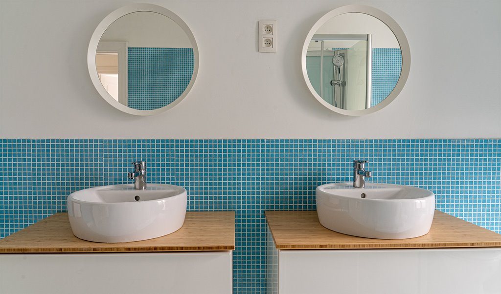 Une grande cuisine équipée avec des espaces individuels pour chacun. Une buanderie avec machines à laver et sèche-linges en libre accès.