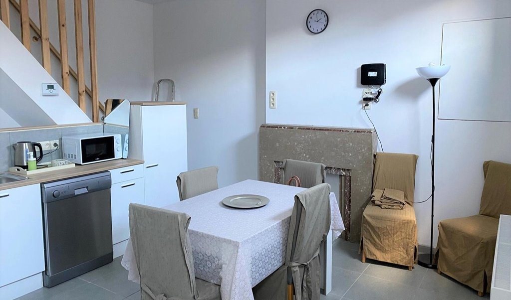 Séjour avec coin cuisine équipée ( frigo, taque vitro, four, lave-vaisselles, four micro-onde, etc....)1 dégagement en sous-sol avec meuble de rangement + 1 salle de douches équipée d'un wc, lavabo, douche italienne, d'un lave-linges etc...- 1er étage: 2 chambres comprenant chacune 1 lit simple, table de chevet, 1 bureau avec chaise, penderie - 1 salle de douche équipée d'un wc, 1 cabine douche, 1 lavabo etc.... - 2ième étage: 2 chambres également équipées.