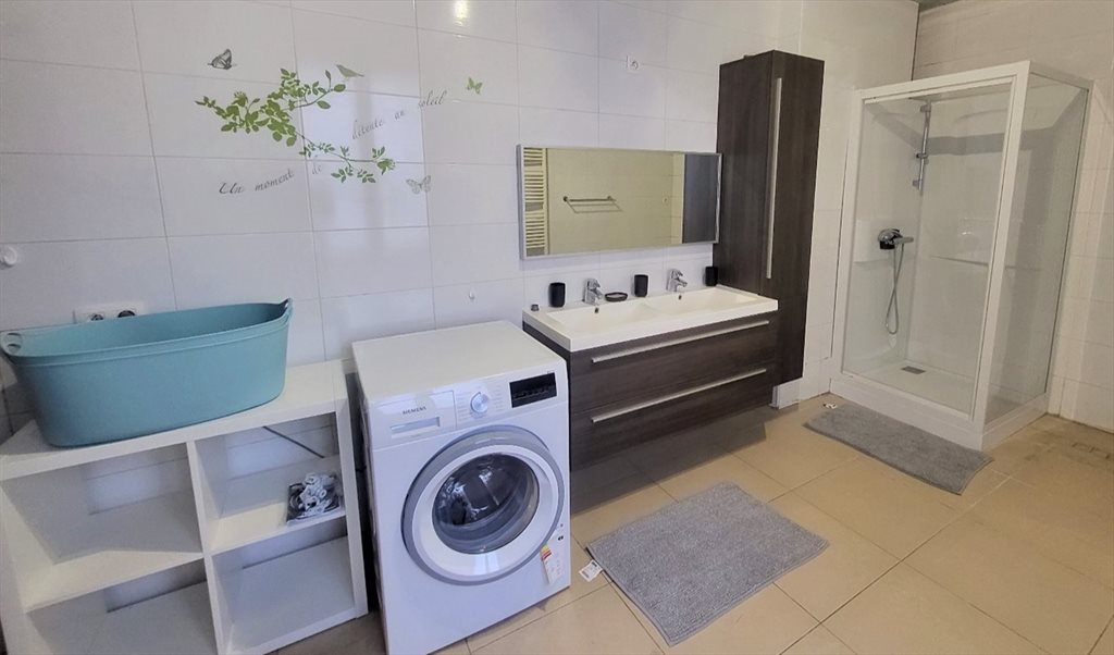 Le rez-de-chaussée dispose de tous les espaces communs avec un grand séjour, une salle à manger, une grande cuisine super-équipée, une buanderie et une petite toilette.