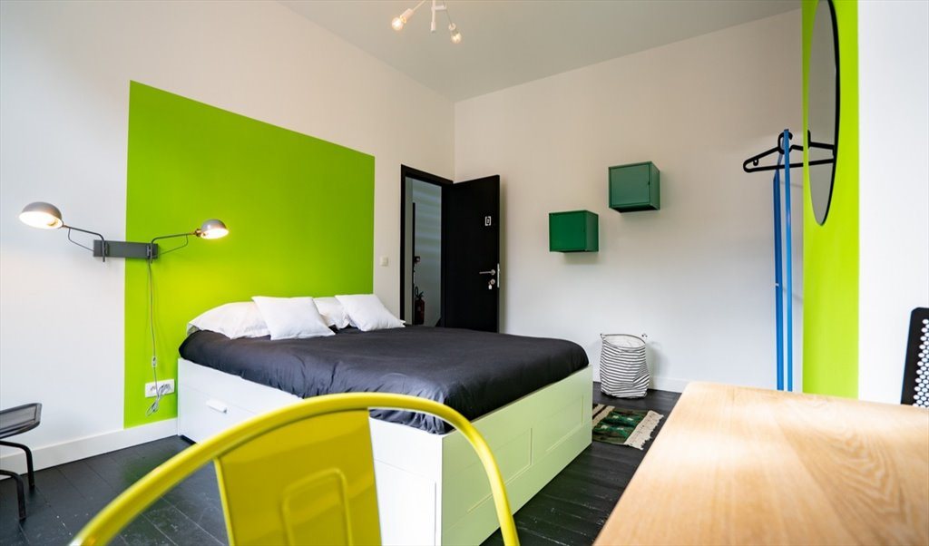 Ideally located between Paul Pastur University and the Palace of Fine Arts, the Fort house has 7 beautiful rooms. They are furnished in an industrial and colourful style. Its asset? This house has a playroom! A great way to brighten up community life! What are you waiting for?