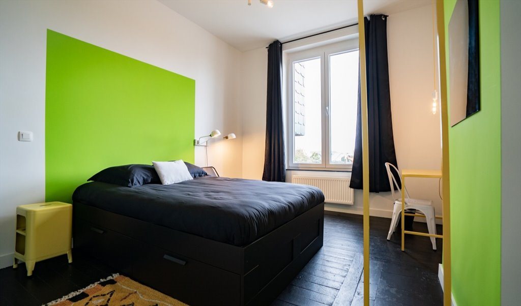 Ideally located between Paul Pastur University and the Palace of Fine Arts, the Fort house has 7 beautiful rooms. They are furnished in an industrial and colourful style. Its asset? This house has a playroom! A great way to brighten up community life! What are you waiting for?