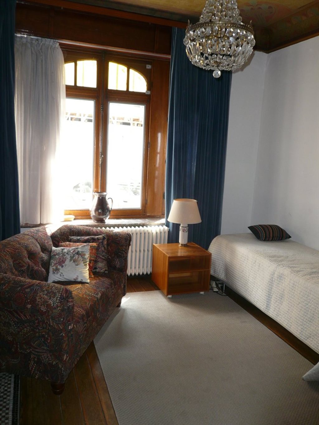 Bruxelles, Cinquantenaire, excellente situation en plein cœur du quartier européen, à proximité de la station de métro Schuman. Très belle maison de maître de 1912, conçue dans l’esprit art nouveau. Nombreuses décorations extérieures et intérieures d’époque. Très bon état. Beau jardin bien orienté, respirant la quiétude; Cuisine équipée , lave-vaisselles . Buanderie: machine à laver, séchoir. TV, WIFI. Pour non fumeurs. Les pièces communes nettoyées 1 fois/sem