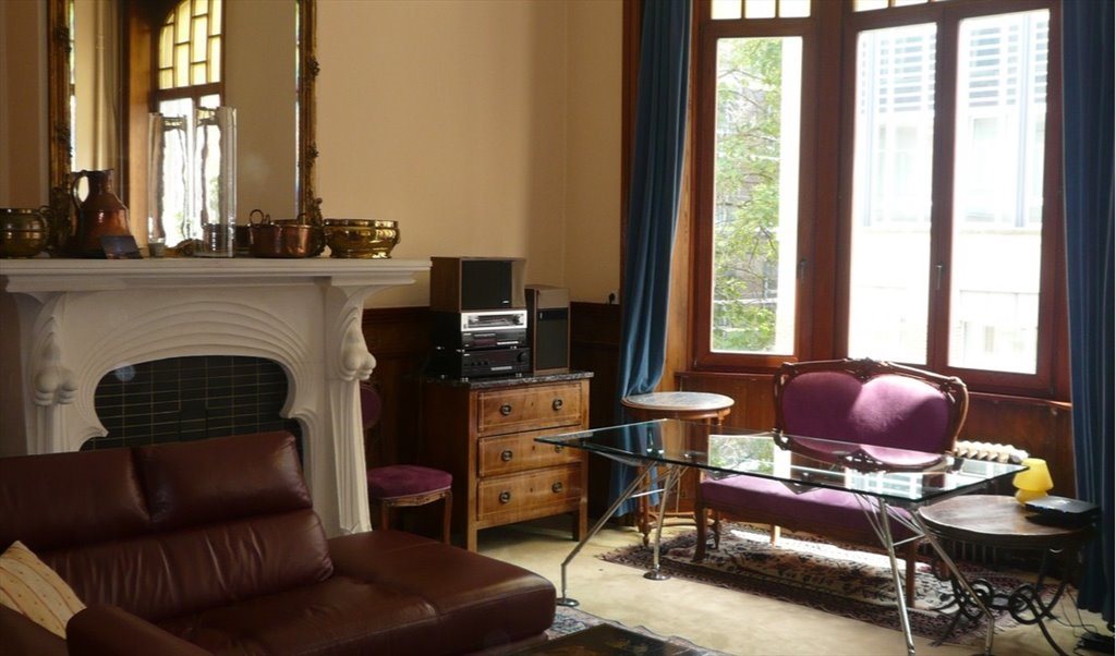 Chambres meublées dans très belle maison Art Nouveau. TV, Wifi, cuisine équipée ( lave-vaisselles), salon, salle de bain,salle de douche, buanderie: machine à laver, séchoir à partager. Proximité Schuman métro, Parc Cinquantenaire. Pour non fumeurs. Pièces communes nettoyées 1 fois / sem.