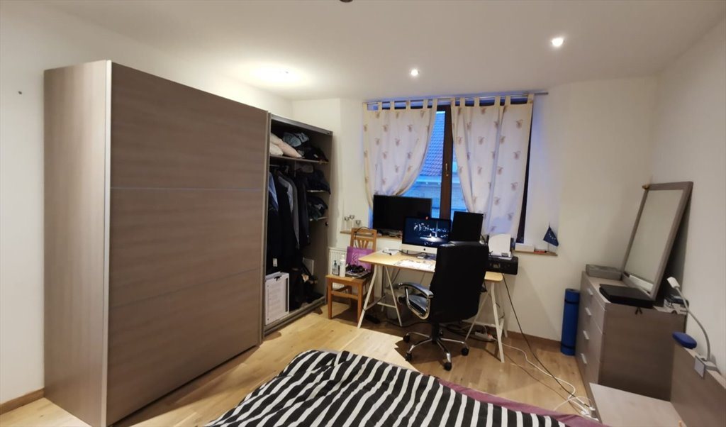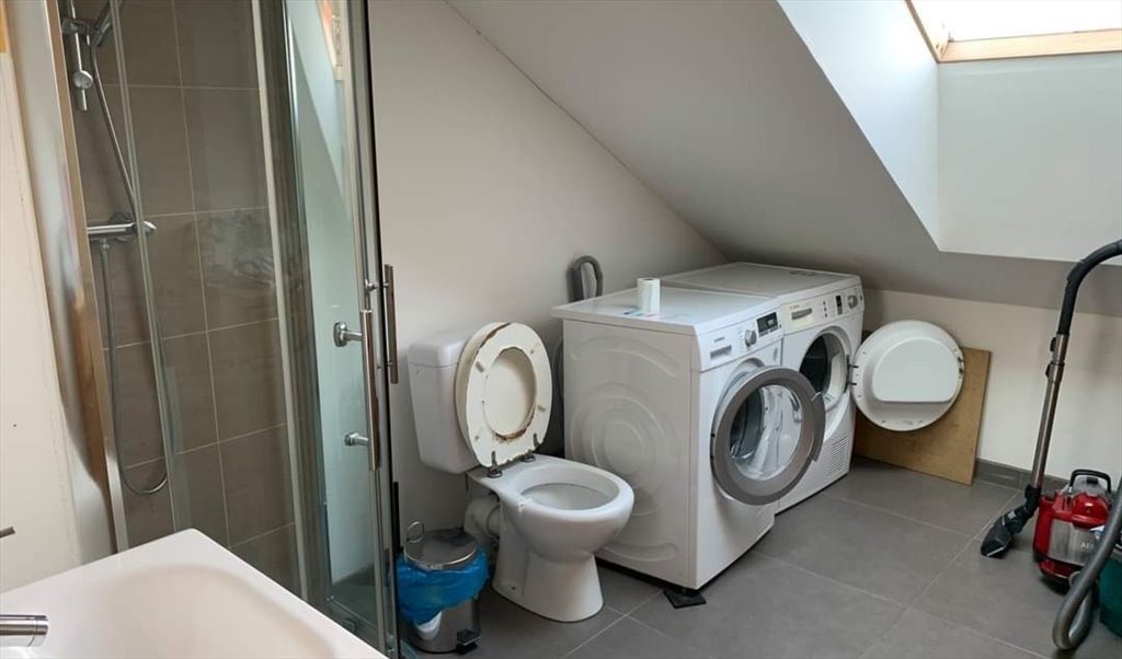The duplex is newly built 4 years ago with ecological materials and consists of 4 rooms, two bathrooms, kitchen, dining and living room and a big terrace with view over brussels.