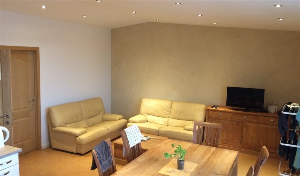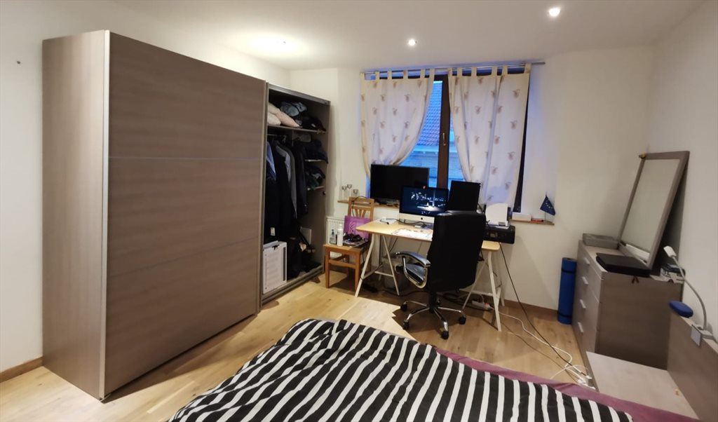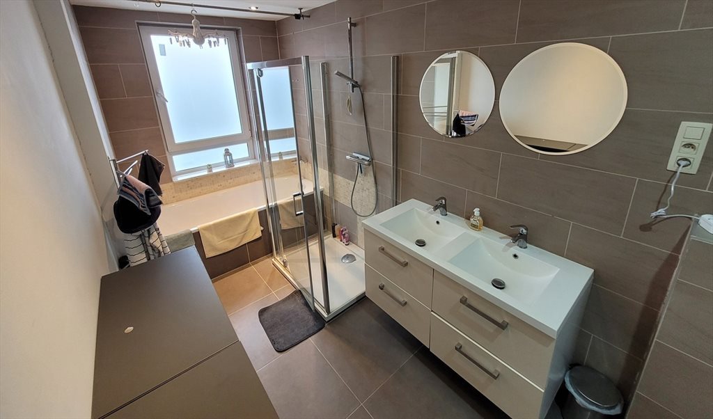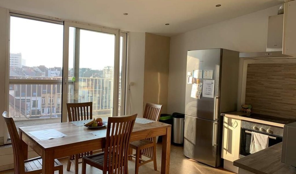 The duplex is newly built 4 years ago with ecological materials and consists of 4 rooms, two bathrooms, kitchen, dining and living room and a big terrace with view over brussels.