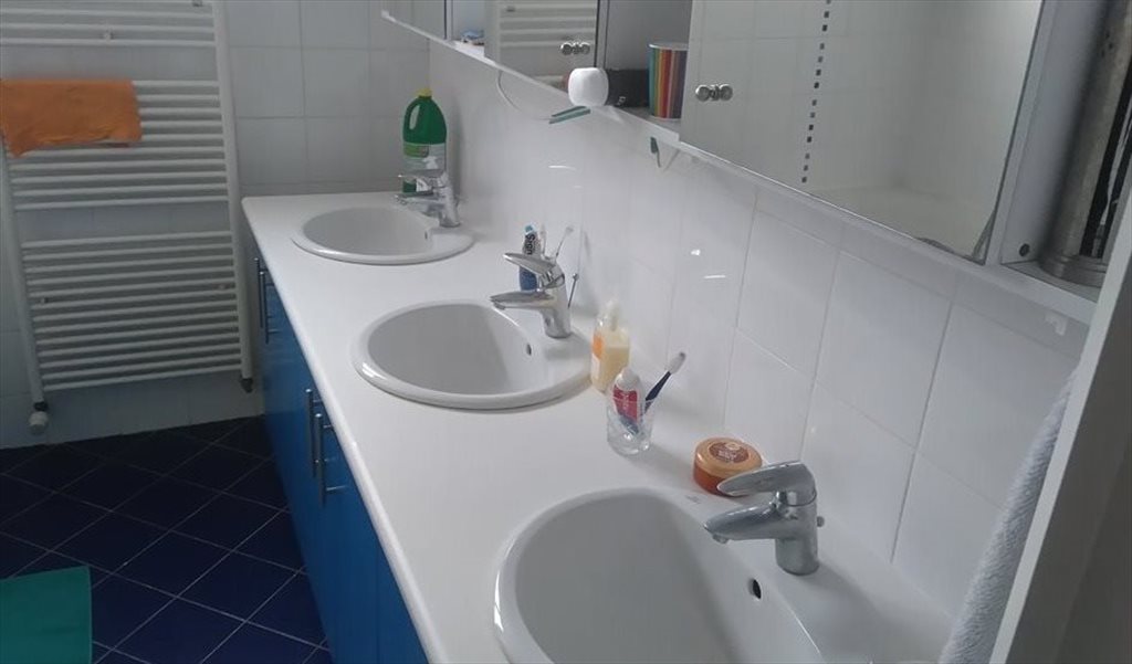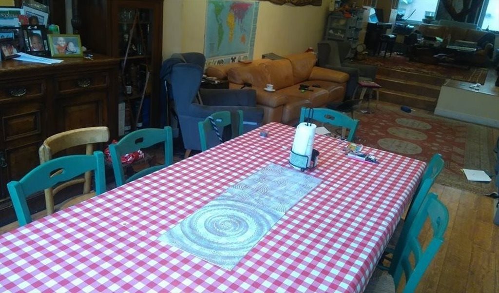 It's on the second floor, you would share the floor and therefore a bathroom with two lodgers (women), and share kitchen and dining-room on ground floor with me and sometimes my children ... C'est au deuxième étage, vous partageriez l'étage et donc une salle de bain avec deux locataires (femmes), et partageriez la cuisine et la salle à manger au rez-de-chaussée également avec moi et parfois mes enfants.