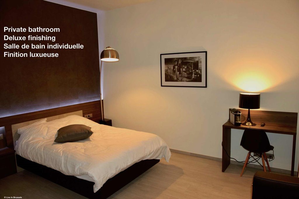 We verhuren pas vernieuwde, luxueuze, degelijke studio’s aan expats (veelal werkzaam bij de Europese Unie) in co-housing (gemeenschappelijke lounge / eetkamer / keuken / wasserij-kamer