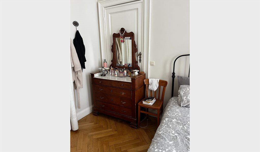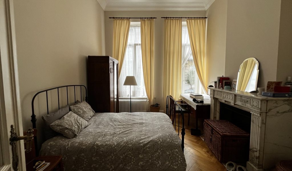 La chambre est spacieuse (16 m²) et lumineuse, entièrement meublée, dans une belle maison de maître située dans un quartier calme d'Ixelles, à côté de l'avenue Louise et à proximité de la Bascule, du Bois de la Cambre, de l'ULB / VUB, de la place Flagey et de Châtelain.