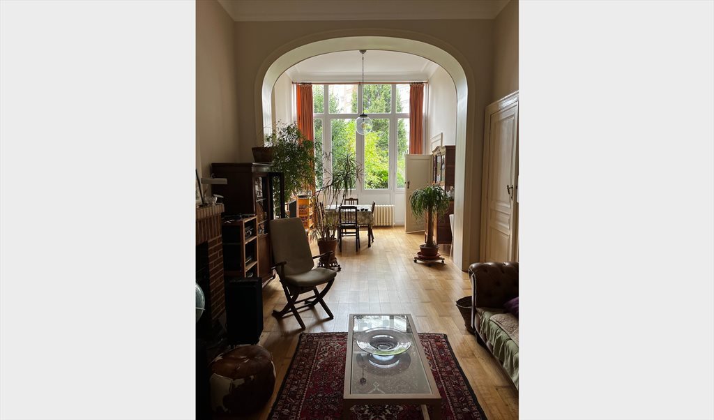 L'appartement est un grand duplex (110 m²) situé au premier étage (« Belle étage »), avec un petit jardin pittoresque. Il est parfaitement situé, à proximité de nombreux restaurants, cafés et supermarchés. Il est très bien desservi par les transports en commun (tram et bus) qui vous permettront de rejoindre très rapidement le centre-ville ou le quartier européen.