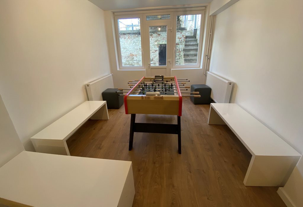 Flagey is located 70 avenue de la couronne, 1050 Ixelles. It’s a big house of 10 rooms with shared kitchen but everyone has a private cupboard with fridge, cutlery, dish ware and cooking set. In the common areas, you will find a tv room, a table-football room, a gym and a laundry room. There is also a beautiful garden and the house is located near Etterbeek train station and Flagey hub.