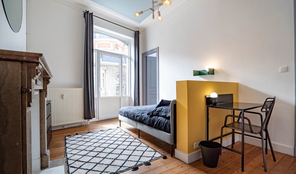 Housed in a quiet street in the town of Ixelles and close to all amenities, this sublime character house combines the charm of the old with the modern thanks to its industrial style and brightly colored spaces! With common areas giving a magnificent view of the garden, are you ready to settle down in one of the 8 spacious rooms of the De Hennin house?