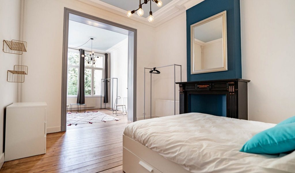 Housed in a quiet street in the town of Ixelles and close to all amenities, this sublime character house combines the charm of the old with the modern thanks to its industrial style and brightly colored spaces! With common areas giving a magnificent view of the garden, are you ready to settle down in one of the 8 spacious rooms of the De Hennin house?
