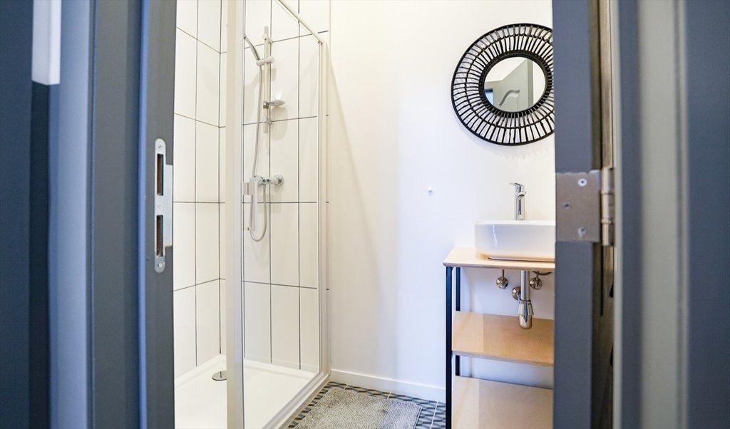 This house combines industrial design and contemporary chic. Shades of blue, green and grey set the tone of the house. The front part offers 5 original bedrooms.