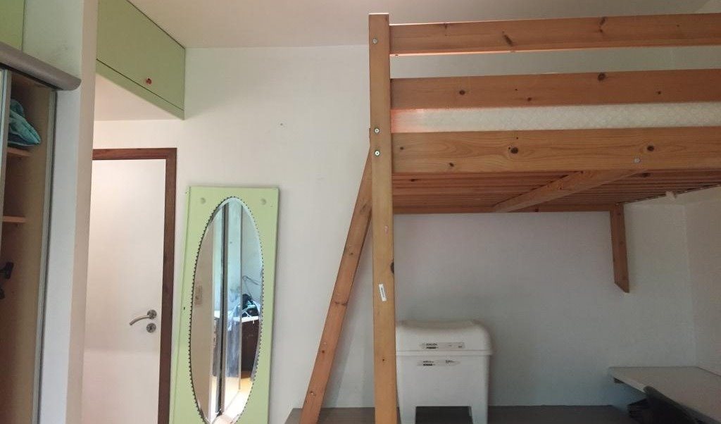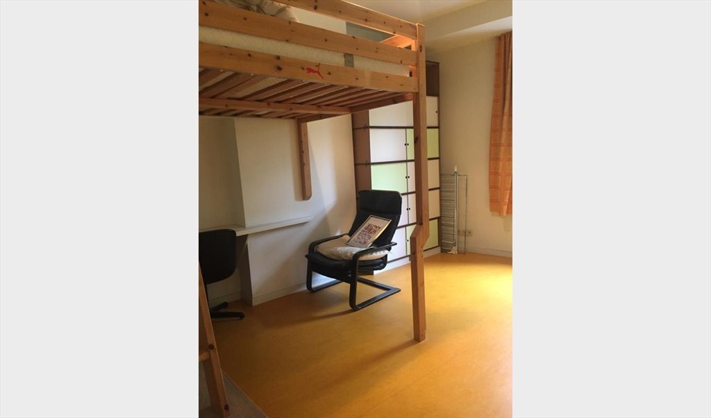 Chambre meublée de 25 m2, très confortable et équipée: d’un double lit en mezzanine (2m x 1m40), une grande penderie , un bureau, un lavabo privatif dans la chambre, chauffage central.
