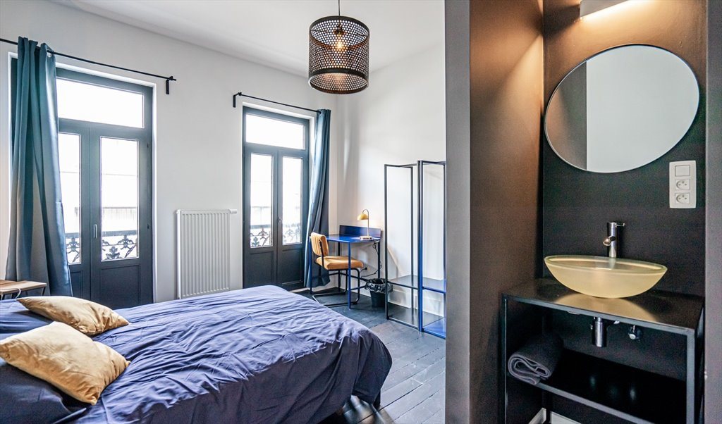 ⚠️ Maison art déco en colocation de 200 m² est composée de 6 chambres, de 6 salles de bains, de 40m² d' espaces communs (salon, cuisine, salle à manger) et d'une jolie terrasse.