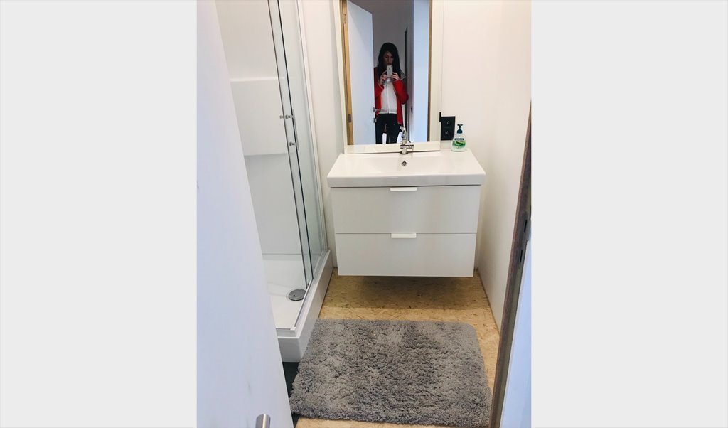 Chambre spacieuse avec coin cuisine avec frigo, salle de douche séparée avec évier et rangements, wc séparé, le tout individuel.