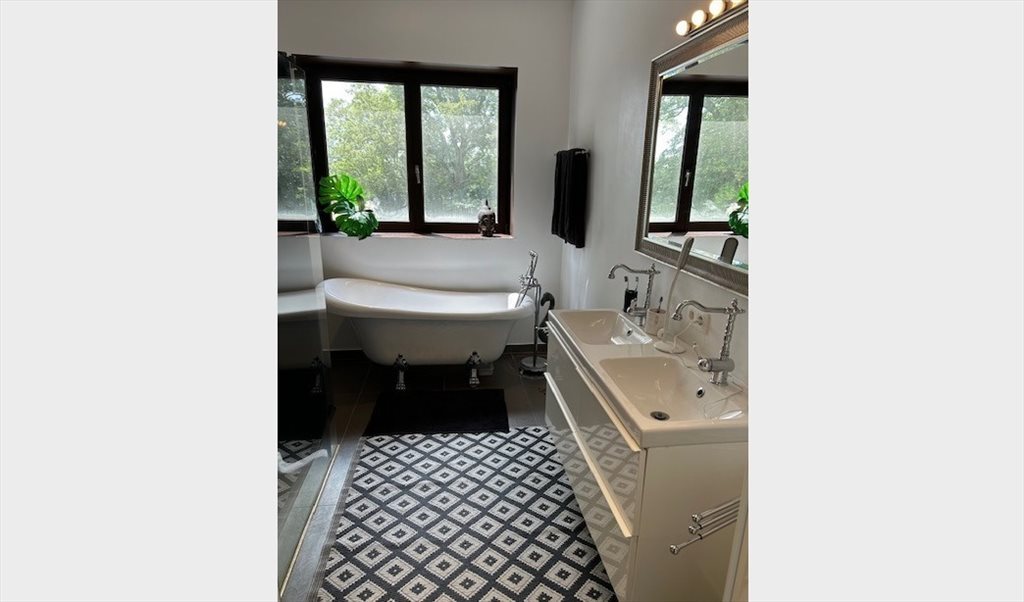 Au 1er, vous avez les chambres individuelles avec une spacieuse salle de bain commune (10 m2) composée d’un double évier avec grand miroir, 4 grands tiroirs de rangement, une armoire à compartiments, une grande douche italienne, un WC et une baignoire.