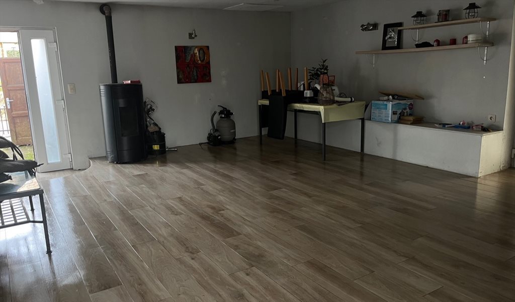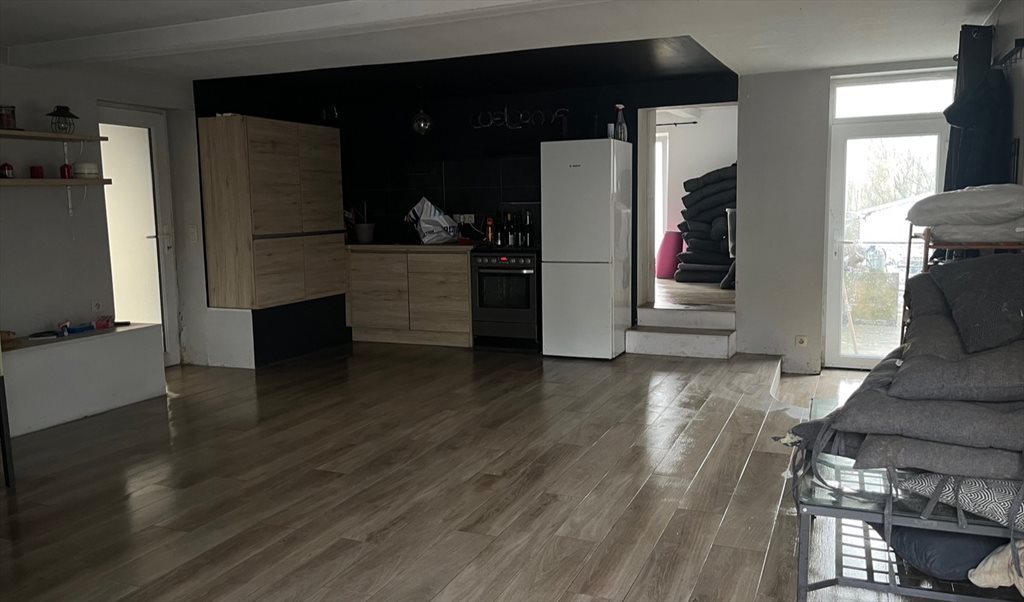 une pièce de vie d’environ 37 m² avec kitchenette et frigo (possibilité d’installer une machine à laver) - chauffage pellets