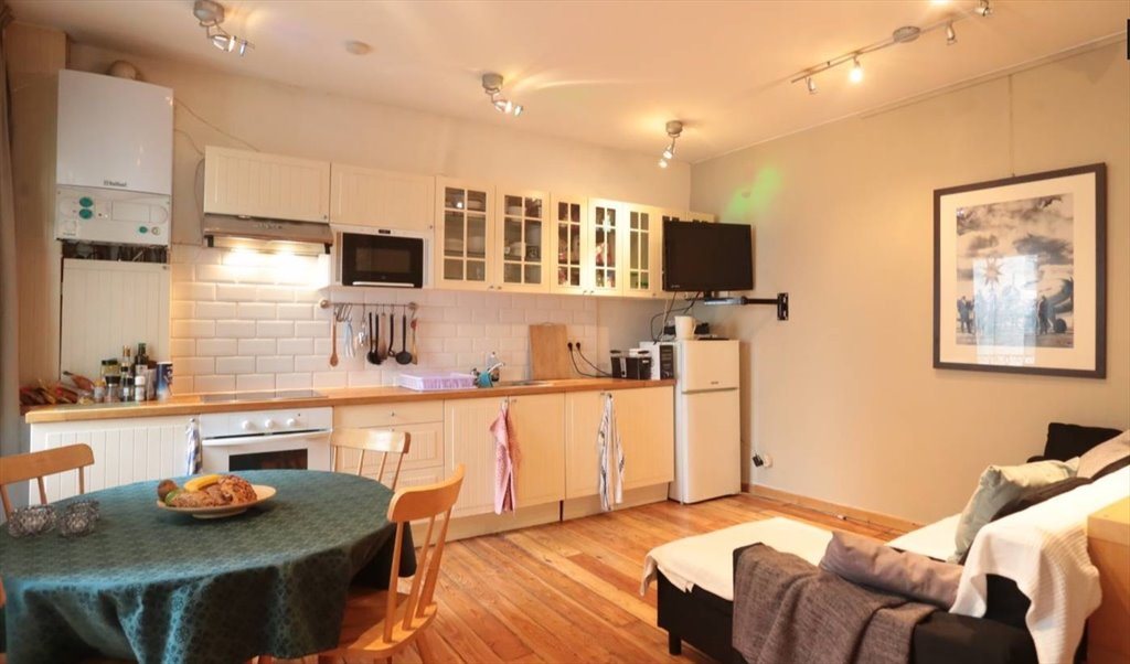 This 1-bedroom apartment on Rue Blaes, in the neighbourhood of Marolles, is fully furnished and covers an area of 40 m². The property has an open-plan kitchen and living area with a dining table, sofa, and television, as well as 1 bathroom with a bathtub and shower.