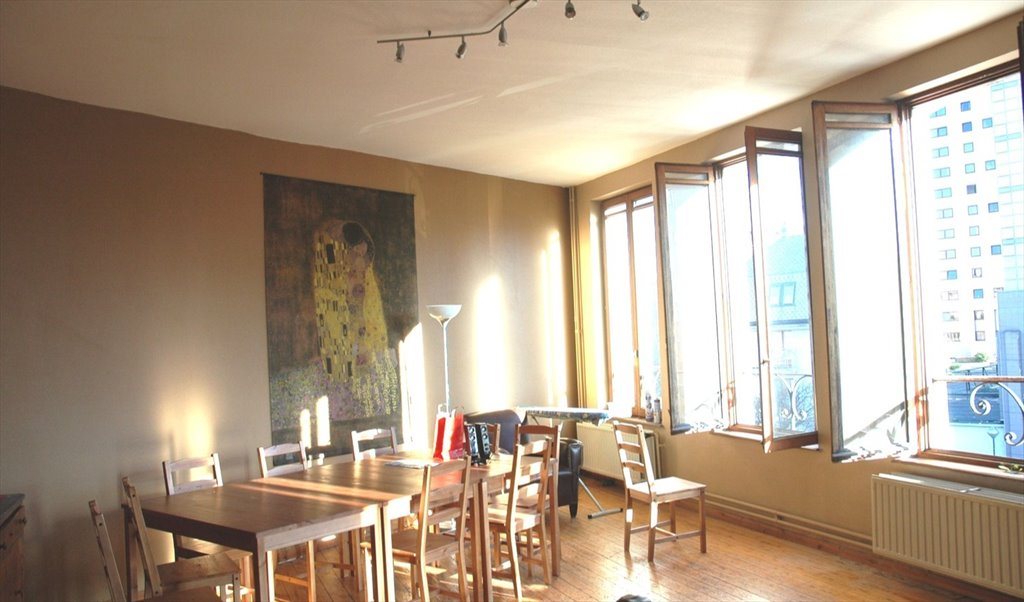 Furnished room in an international community house for 9 young professionals, students or trainees... People from Italy, Spain, Finland, Iceland, Ireland, Germany, France,…. The Maison de maître is 1 min walk from metro station Porte de Hal (Saint Gilles) and 2 minutes in metro from Louise, 5 minutes in metro from Schumann or ULB, 5 minutes walk from Station Midi (South). And 5 minutes walk from the most trendy going out part of Brussels. The house is fully furnished and the kitchen is very well equipped (fridge, freezer, microwave, electric oven, all kitchen utensils).All rooms are furnished. More in the house:, washing machine, dryer, TV, internet connection, pc, wireless, dishes). Living room is very large with 5 double windows.