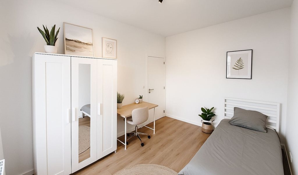 Chambres meublées lumineuse avec fenêtres : lit, armoire, chaise, bureau,....