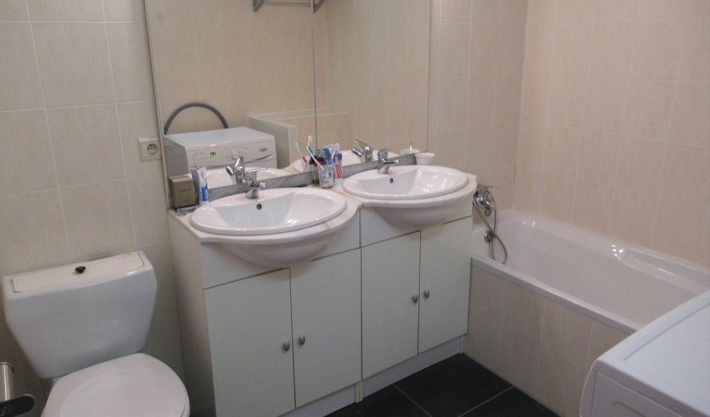 Large living room, large fully equipped kitchen, balcony terrace, 2 shower rooms, 2 toilets - one with a spacious shower with a toilet and a sink and the other with a bath, 2 large sinks + storage space, toilet and machine to wash. Large corridor between the different rooms. The room has a large wardrobe with a wardrobe, single bed with drawer storage below + possibility to place a desk or other furniture (on request).