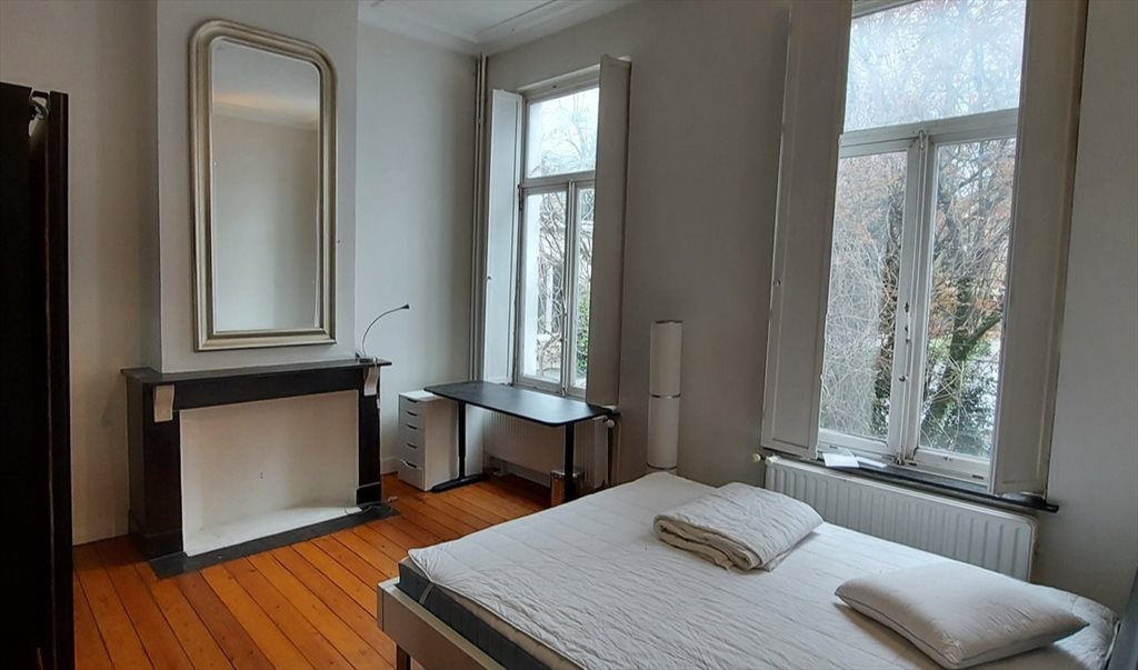 In this nicely renovated mansion close to Botanique I'm offering a flatshare with 7 professionals, 3 man, 4 woman. This large and cozy room on 1st floor (25 sqm) is furnished with a king-size double bed, big wardrobe with mirror, desk and an ergonomic chair. It is the nicest room of the house.