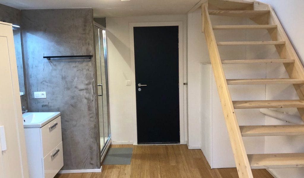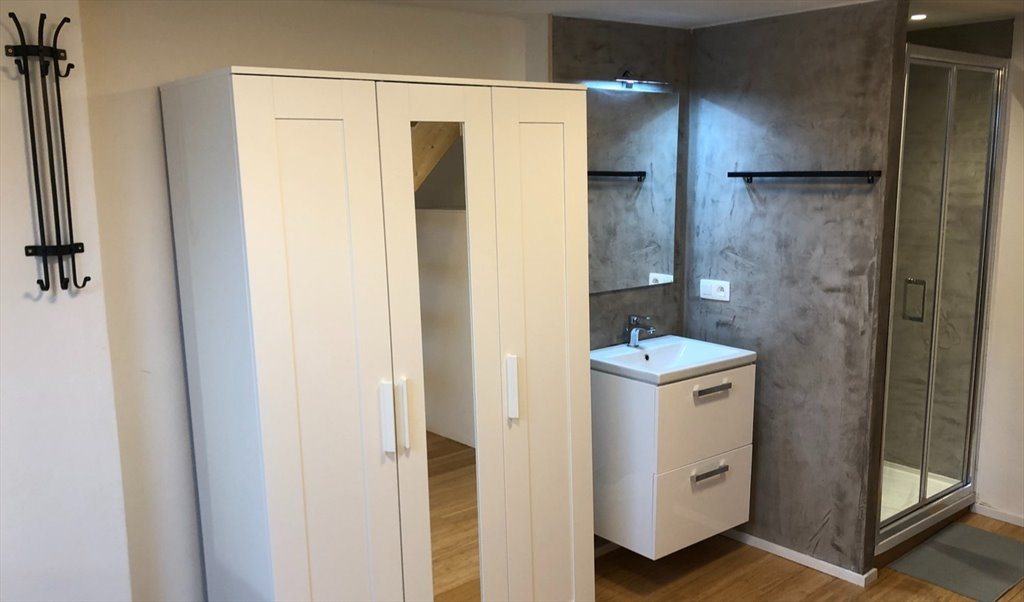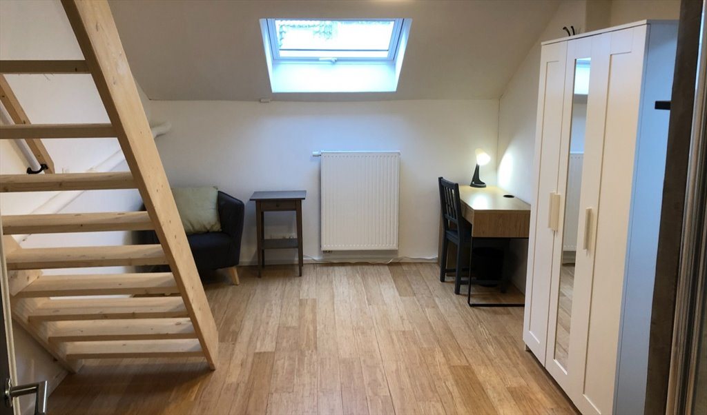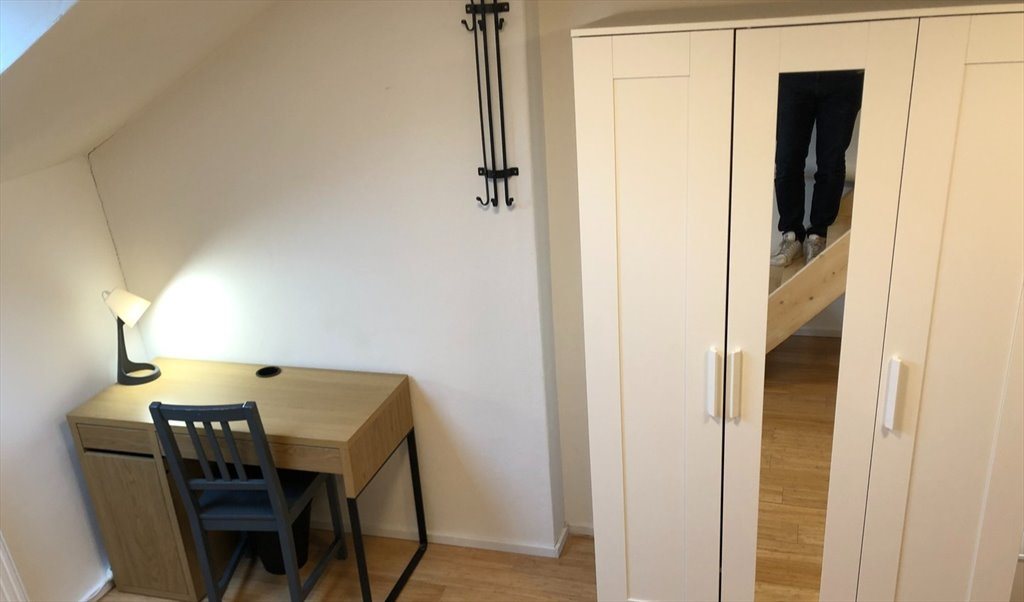 This ad advertizes a room with private shower and shared toilet of about 20 m2. There is a single bed.