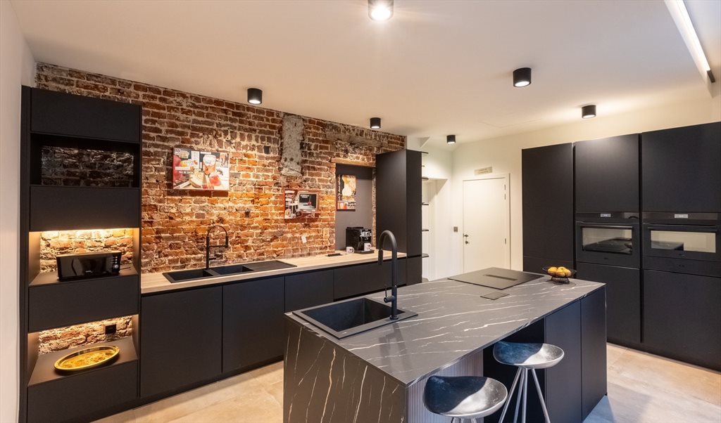 Une cuisine toute équipée avec 8 frigos dont 1 commun,