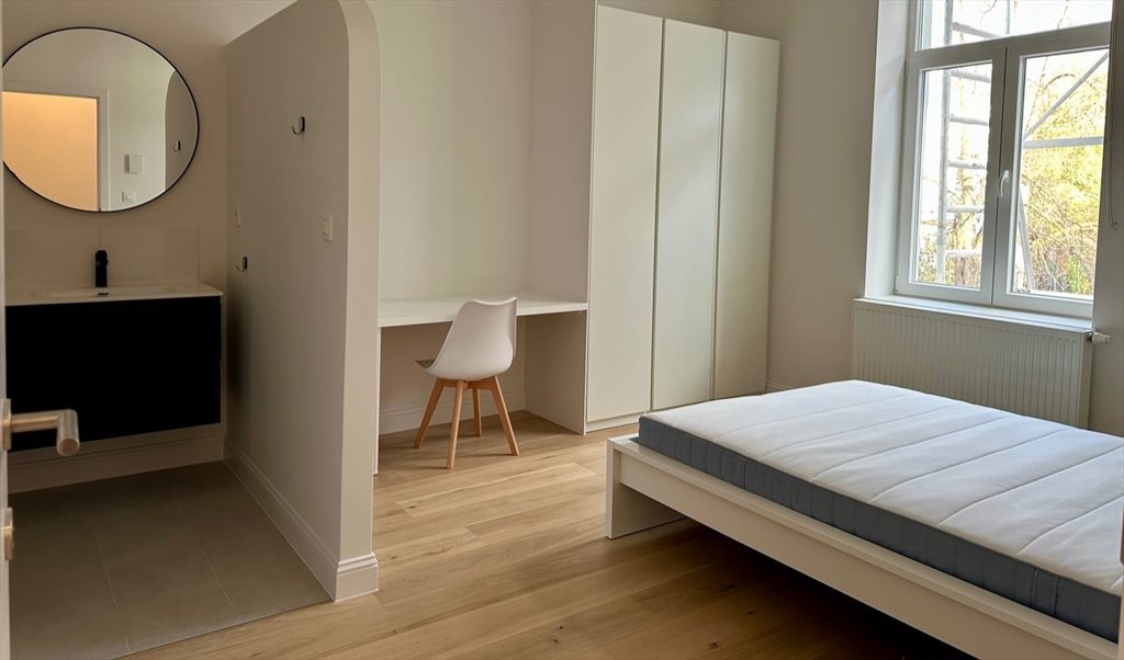 La chambre meublée qui se libère dispose d'un lit (1,40m), d'une armoire, d'un bureau, d'une chaise, d'une table de chevet, d'un parlophone ainsi que d'une douche et de toilettes privatives.