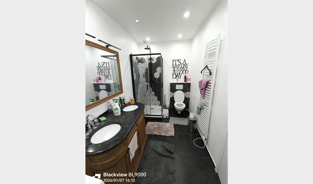 Il existe deux SdB qui sont partagées avec l'ensemble de notre colocation, ainsi que 2 WC (une à chaque étage).