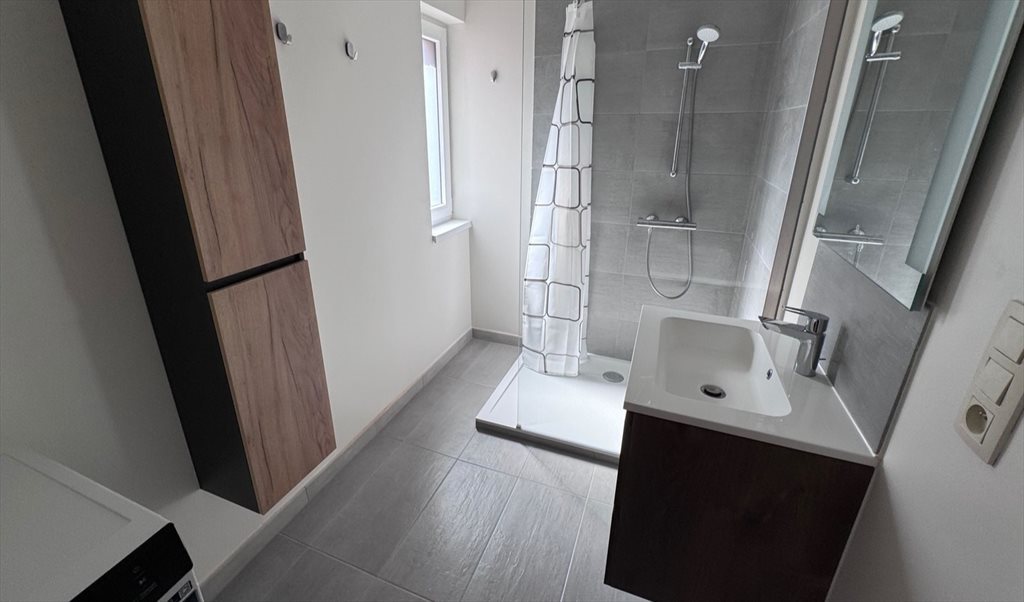 • une salle de douche commune avec espace de rangement et espace buanderie avec machine à laver et sèche-linge
