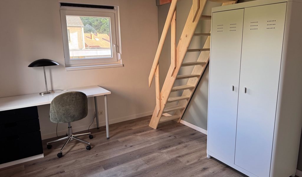 • deux chambres privées avec mezzanine contenant chacune : un lit 1 personne (1m40) (avec linge de maison), un bureau, une chaise de bureau, une garde-robe ;