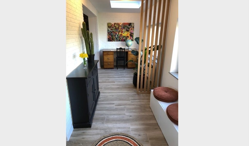 🏡. La maison, qui a été entièrement rénovée en 2021 pour y vivre en colocation, chambre de +/-20m2 avec douche, lavabo et WC individuel. Les espaces communs sont tout aménagés, relookés et avec un living plein sud, salle à manger, cuisine full équipée avec 2 grands frigo et 2 congélateurs et un espace bureau vue sur le jardin, hall, WC.
