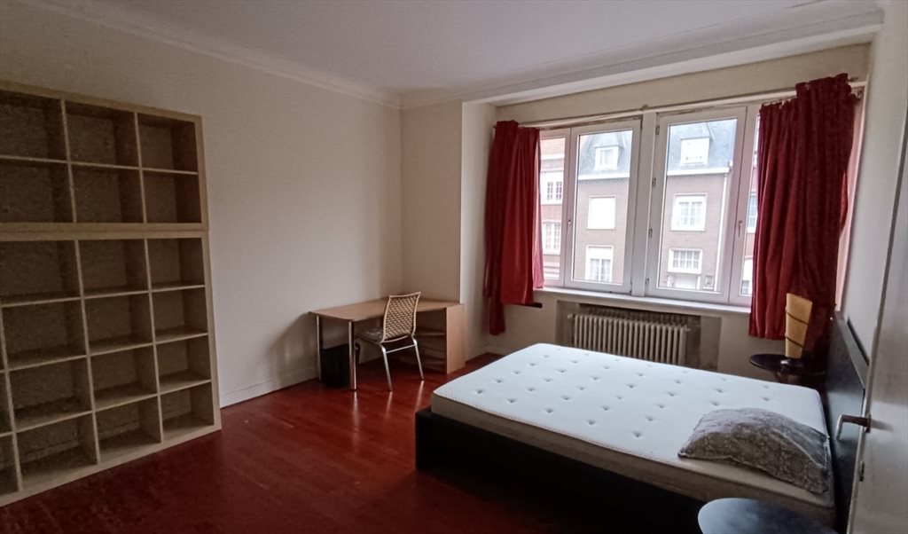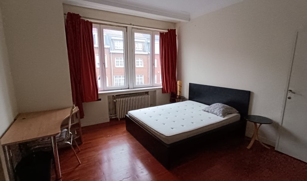 Nice 1rst floor room (c. 25m²), double bed, desk, Big cupboard; lighted and well ventilated ; Big window facing a nice and quiet street.