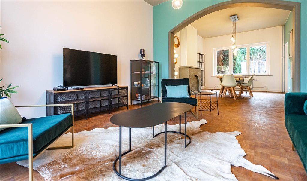 Maison en colocation art déco en colocation de 200 m² est composée de 4 chambres, de 4 salles de bains, de 64 m² d' espaces communs (salon, cusine, salle à manger) et d'un espace extérieur (terrasse et jardin).