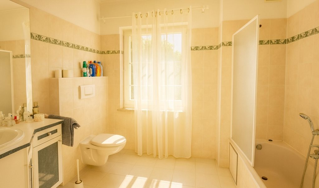 La maison dispose d'un chauffage au sol, de double vitrage partout, d'un coin vélo, d'une cuisine-salle à manger entièrement équipée, de salles de bain avec toilettes séparées. Il y a également un grand jardin (en partie boisé) pour les barbecues, les jeux de ballon (badminton), les jeux de société, et un potager pour ceux qui ont la main verte.